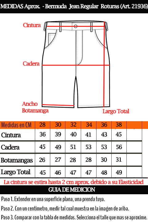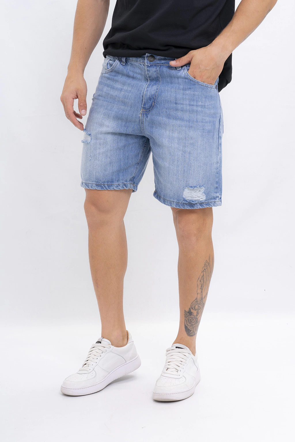 Bermuda de Jean 5 Bolsillos con roturas, diseñada para quienes buscan un estilo casual y moderno. Esta prenda cuenta con un calce regular que se adapta cómodamente a tu figura.