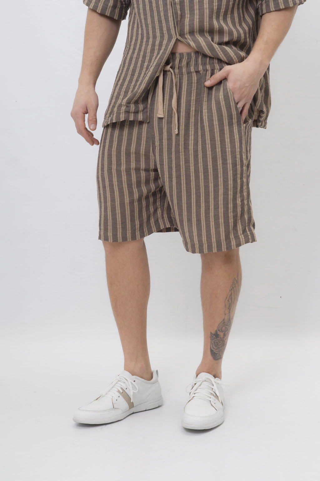 Confeccionada en lino de alta calidad con un elegante diseño a rayas, esta bermuda es la opción ideal para los días de verano. Cuenta con cordones ajustables en la cintura para un calce personalizado y bolsillos laterales prácticos. Perfecta para quienes buscan comodidad y estilo fresco.