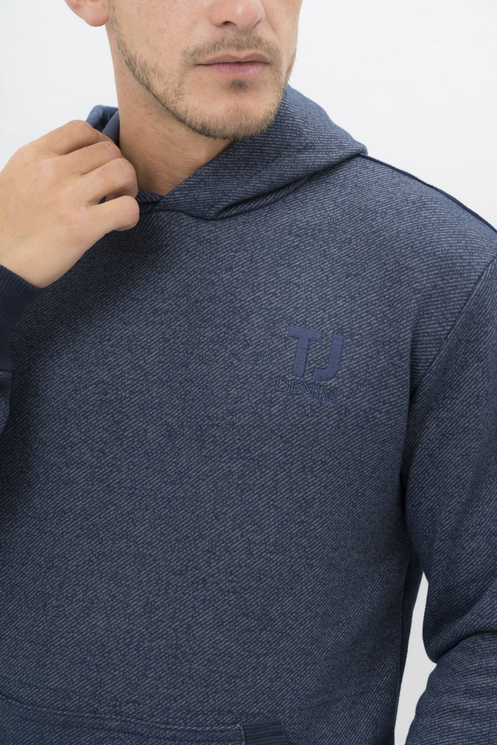 Descubre el Buzo Canguro confeccionado en algodón con una textura diagonal que brinda comodidad y estilo. Este modelo cuenta con una estampa TJ Denim al frente, sutil y elegante. Su calce es regular, ideal para el uso diario.