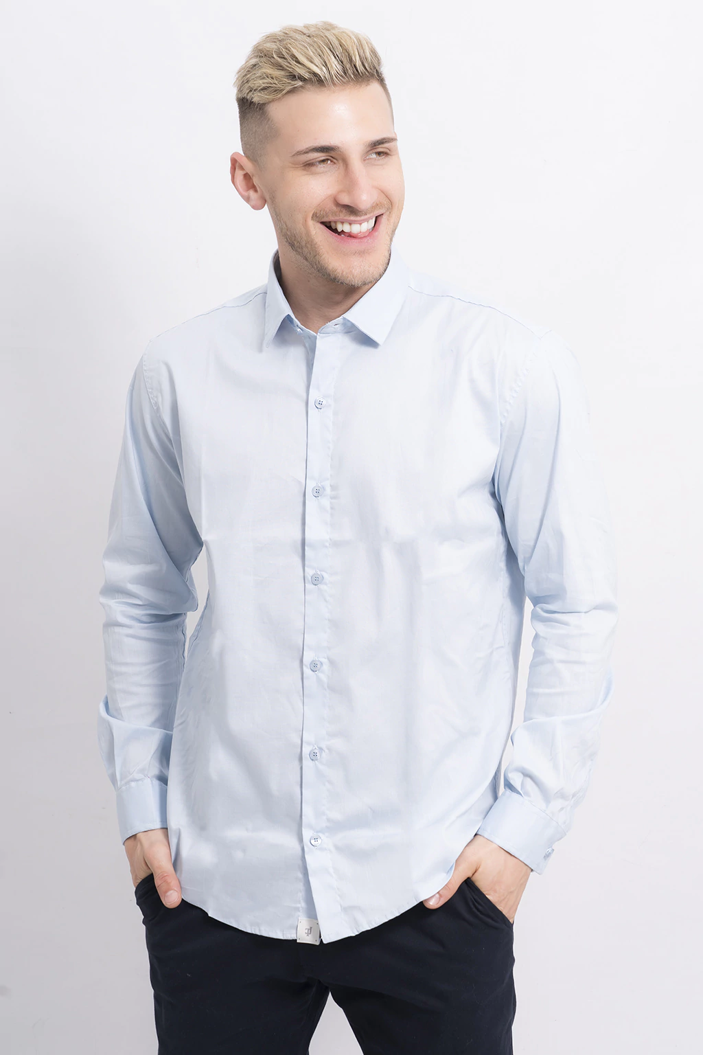 Camisa manga larga realizada en poplín, un tejido de algodón poliester de excelente calidad, cuenta con spandex para mayor adapabilidad al cuerpo, resultando una tela suave y de gran confort. Su cuello inglés se caracteriza por ser un poco más corto y moderno. Si preferís un calce más holgado, te sugerimos llevar un talle más grande del que habitualmente usas.