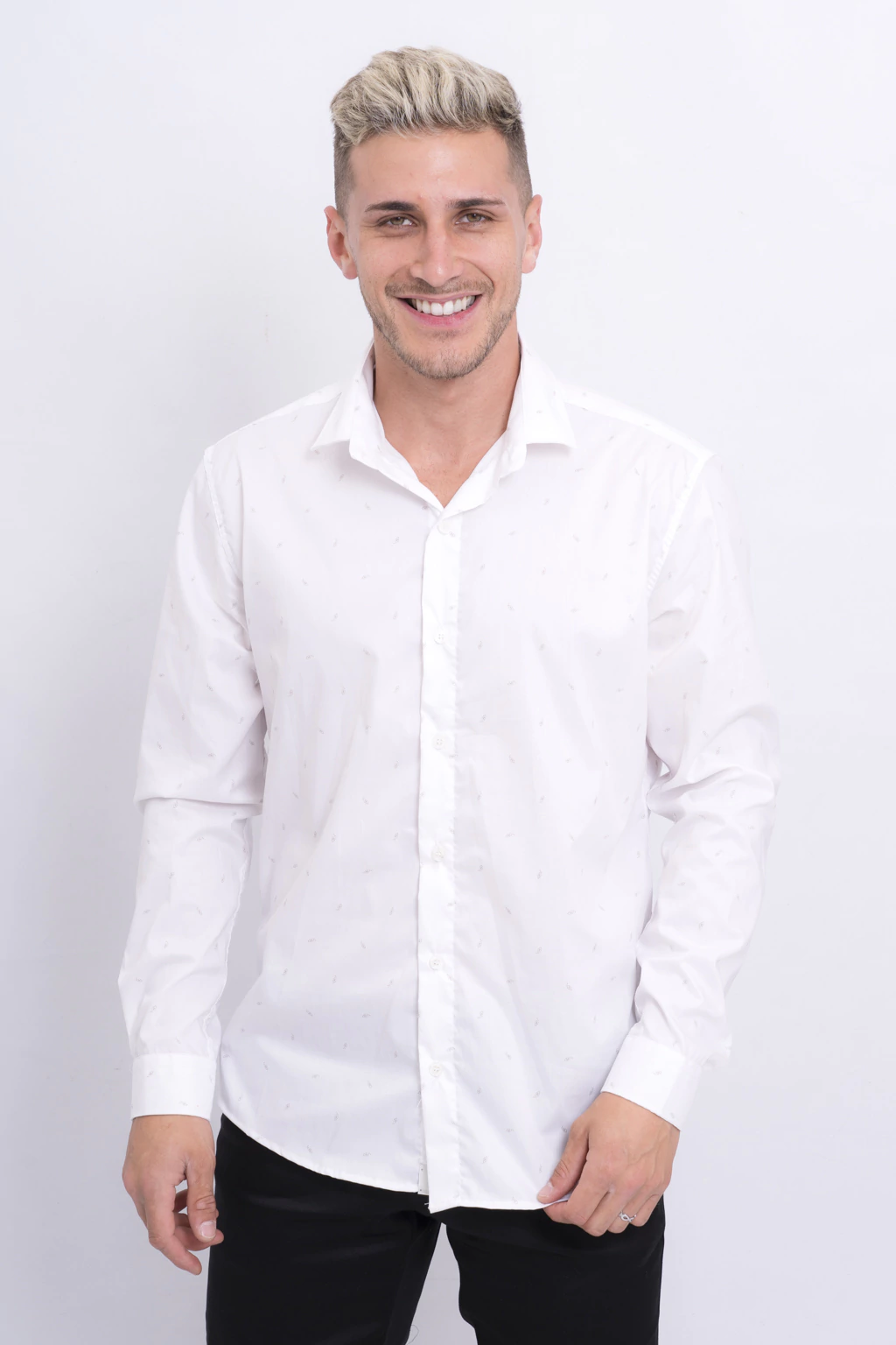 Descubre la elegancia y la comodidad con nuestra camisa manga larga confeccionada en tela Poplin de algodón y poliéster. Con un atractivo diseño estampado full, esta prenda es perfecta para cualquier ocasión, combinando estilo y confort en un solo producto.