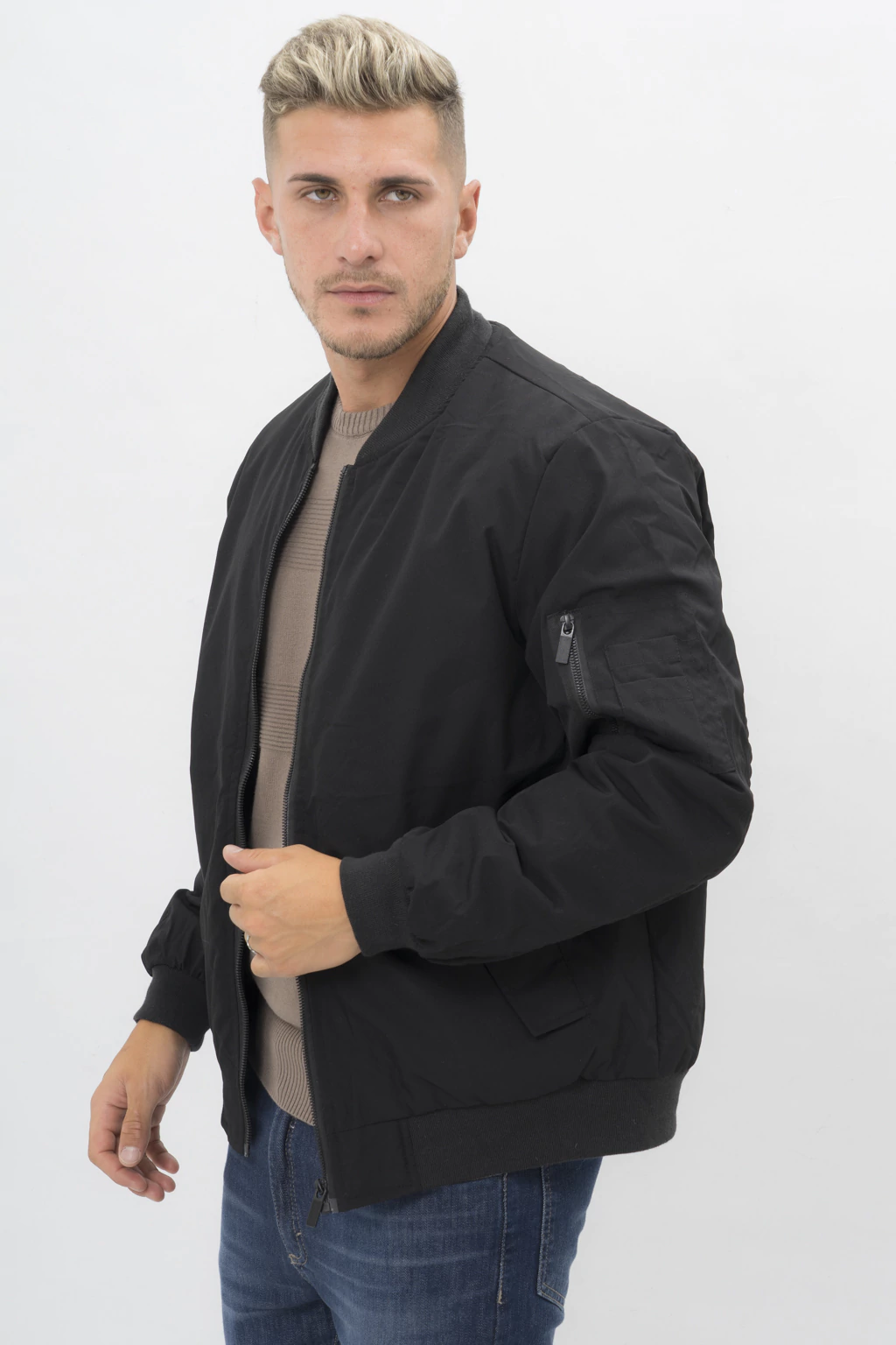 Incluye bolsillos laterales con cierre a presión, un práctico bolsillo interno y el característico bolsillo en la manga. Su diseño llega hasta la cadera.