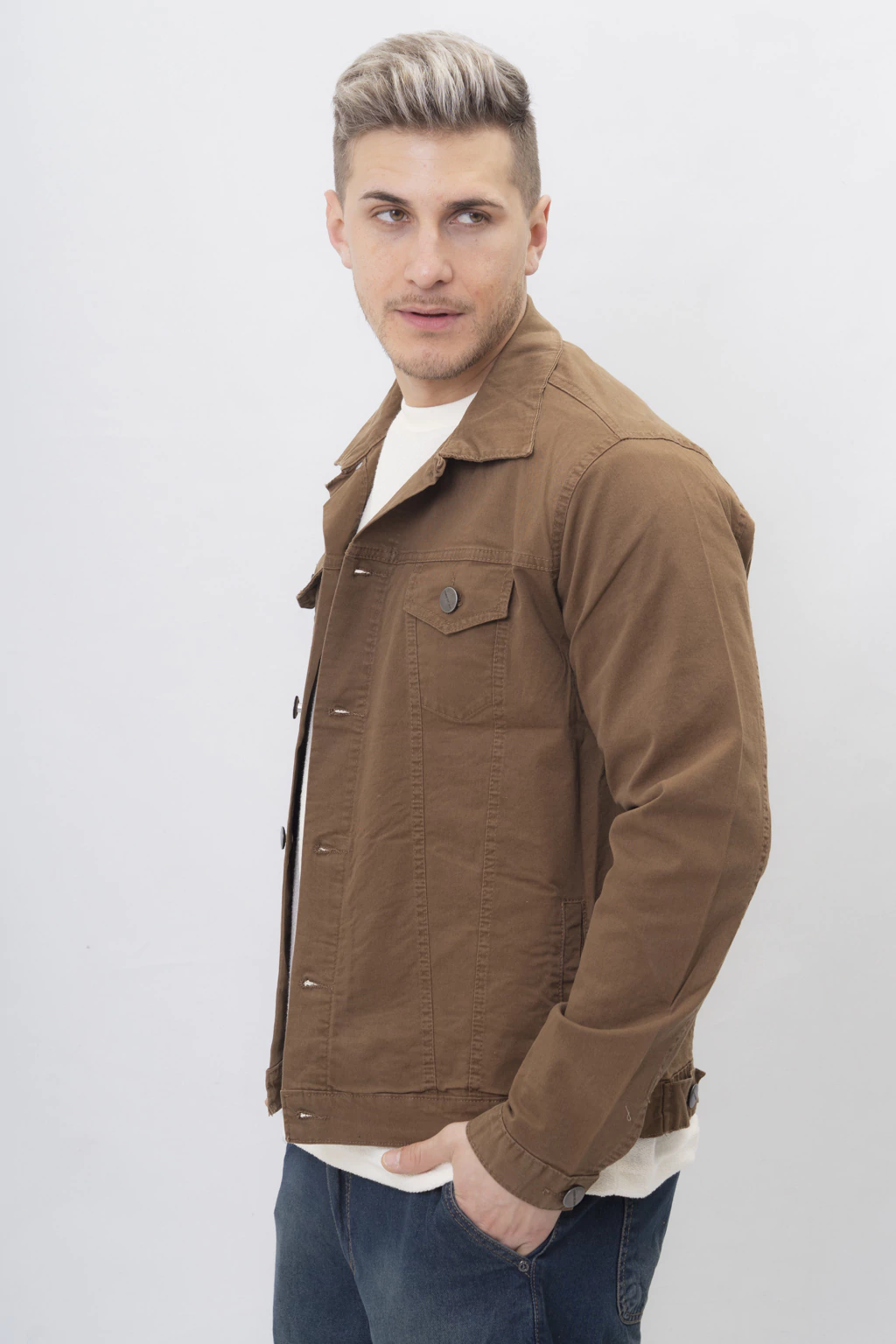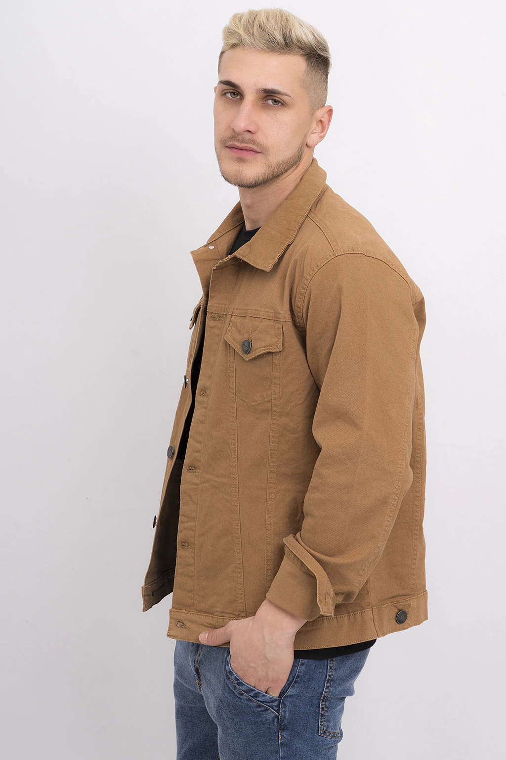 Con un cuello estilo camisa y múltiples bolsillos: dos superiores al frente y bolsillos laterales, esta chaqueta es perfecta para quienes buscan funcionalidad sin sacrificar la moda. Su espansor con botones en la cintura permite un ajuste a medida, adaptándose a tu cuerpo.