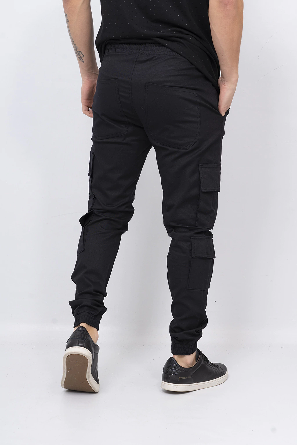 Diseñado para ofrecerte flexibilidad y comodidad en tu día a día. Con elásticos en la cintura y botamangas, este modelo cuenta con cordones ajustables y múltiples bolsillos, incluyendo los característicos del diseño cargo.