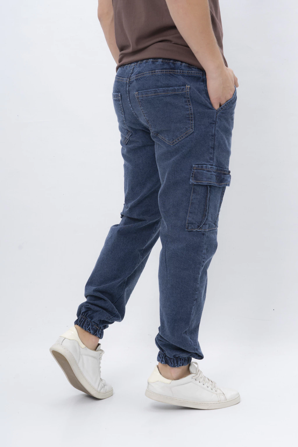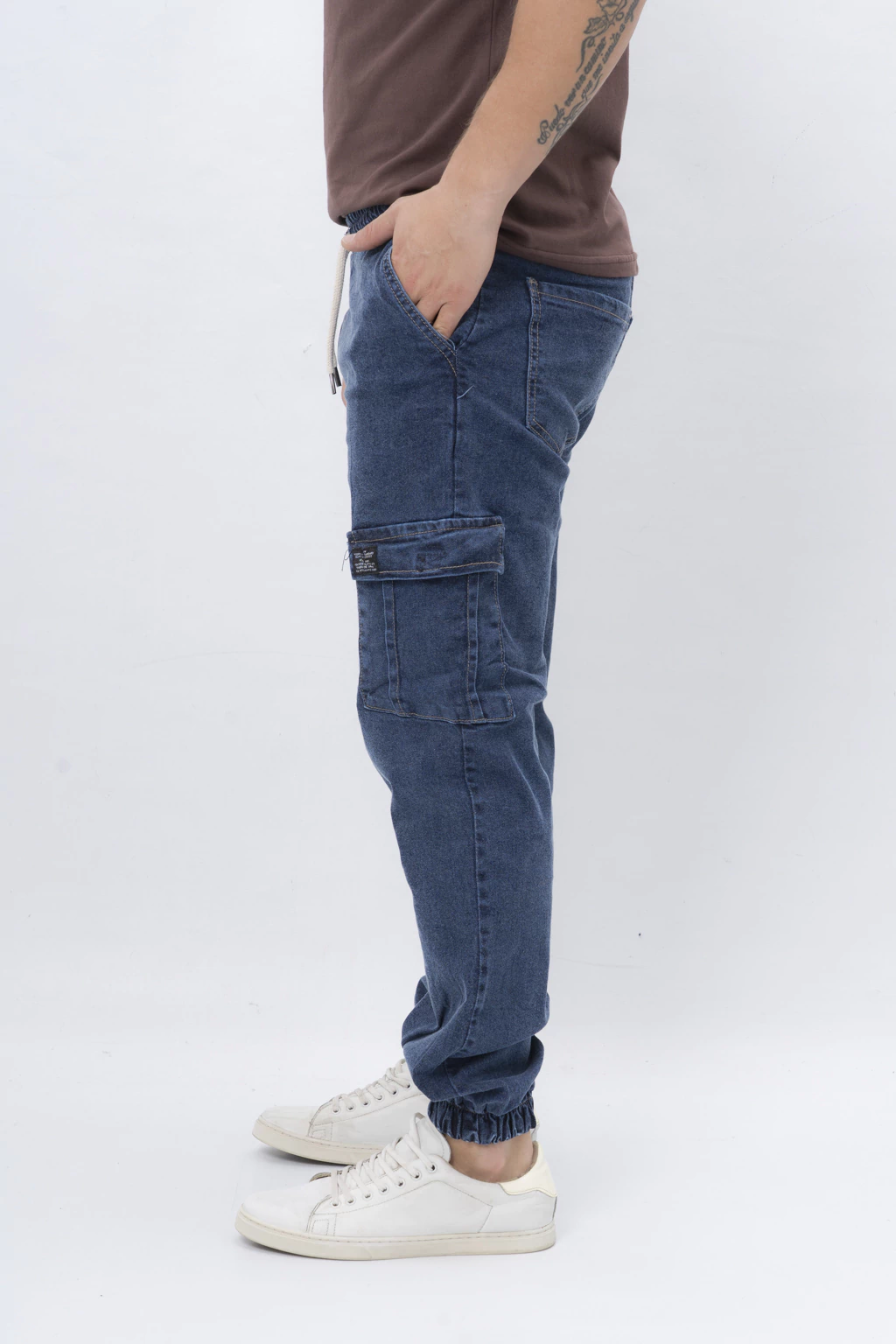 Jogger cargo de Jean elastizado para mayor flexibilidad. Cuenta con elásticos en cintura y botamangas. Cordones ajustables a la cintura. Bolsillos laterales y traseros además de los bolsillos tradicionales a sus costados, caracteristico del diseño cargo. Regular Fit. Te sugerimos llevar el talle que habitualmente usas.
