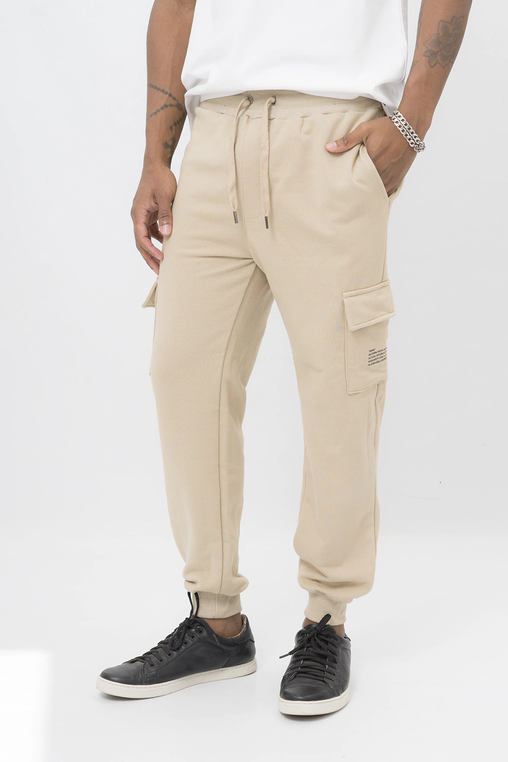 Descubre nuestro Jogging Cargo, confeccionado en suave algodón Rustico, ideal para aquellos que buscan comodidad sin sacrificar el estilo. Su calce es regular, y cuenta con cordones ajustables en la cintura para un fit personalizado. La prenda presenta un texto impreso en uno de sus bolsillos laterales, aportando un toque moderno.
