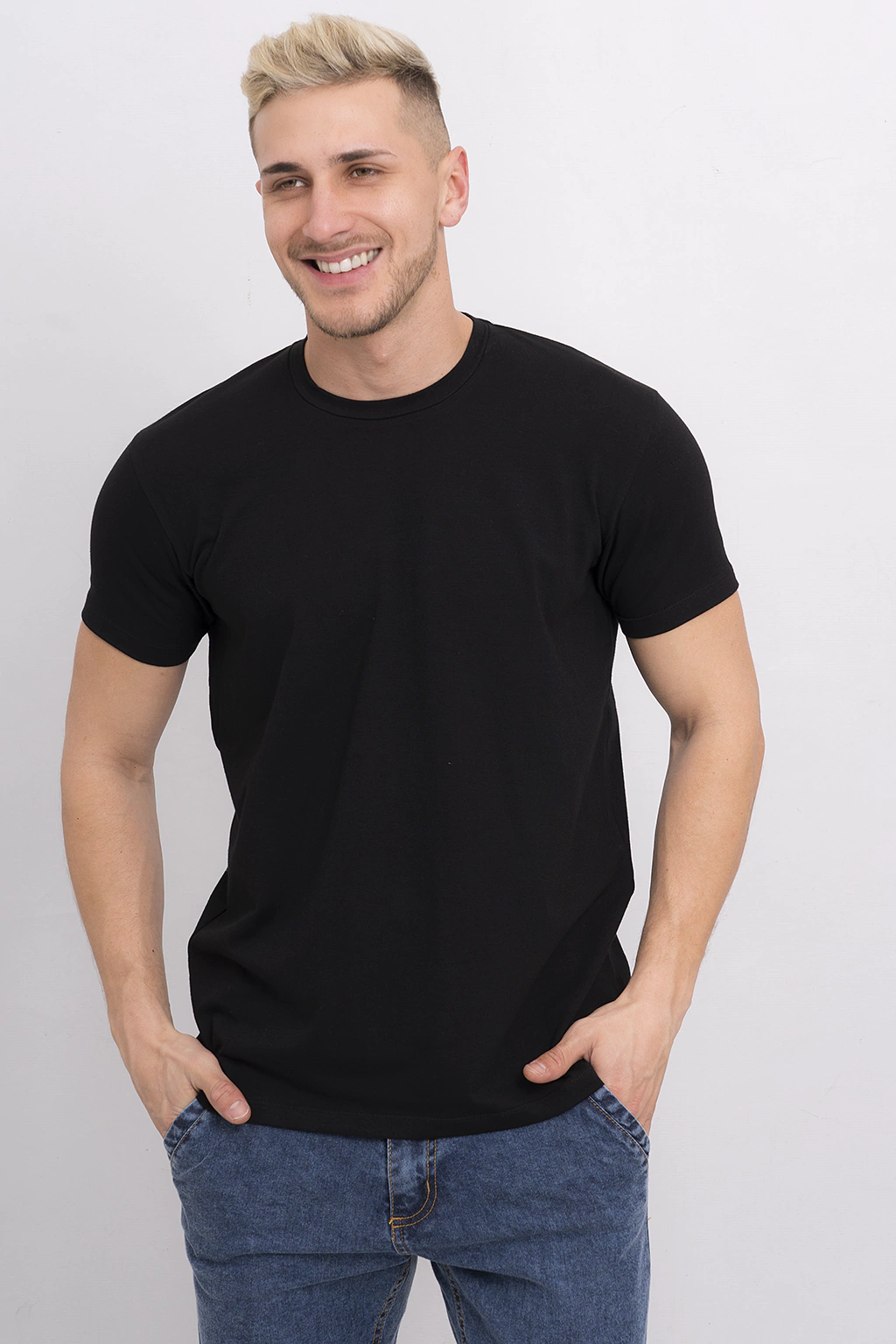 Esta remera básica de lycra es un esencial en tu guardarropa. Con un escote redondo y mangas cortas, es perfecta para cualquier ocasión.