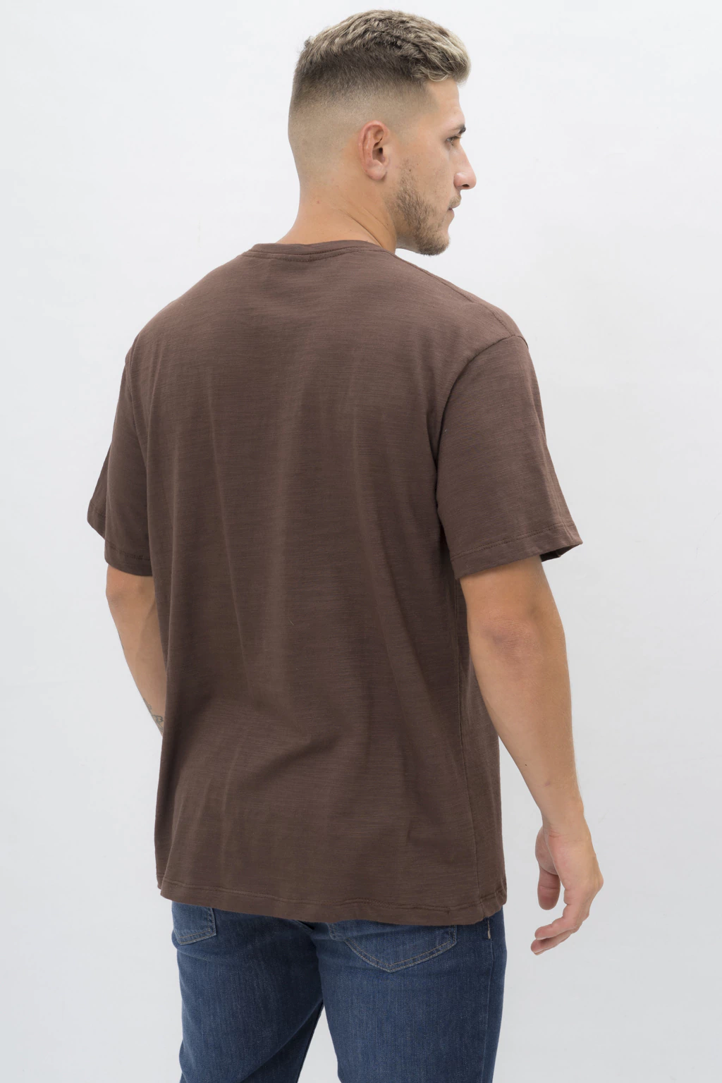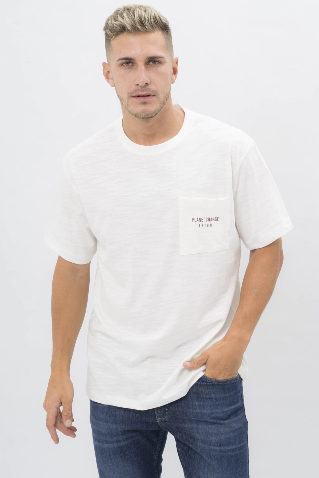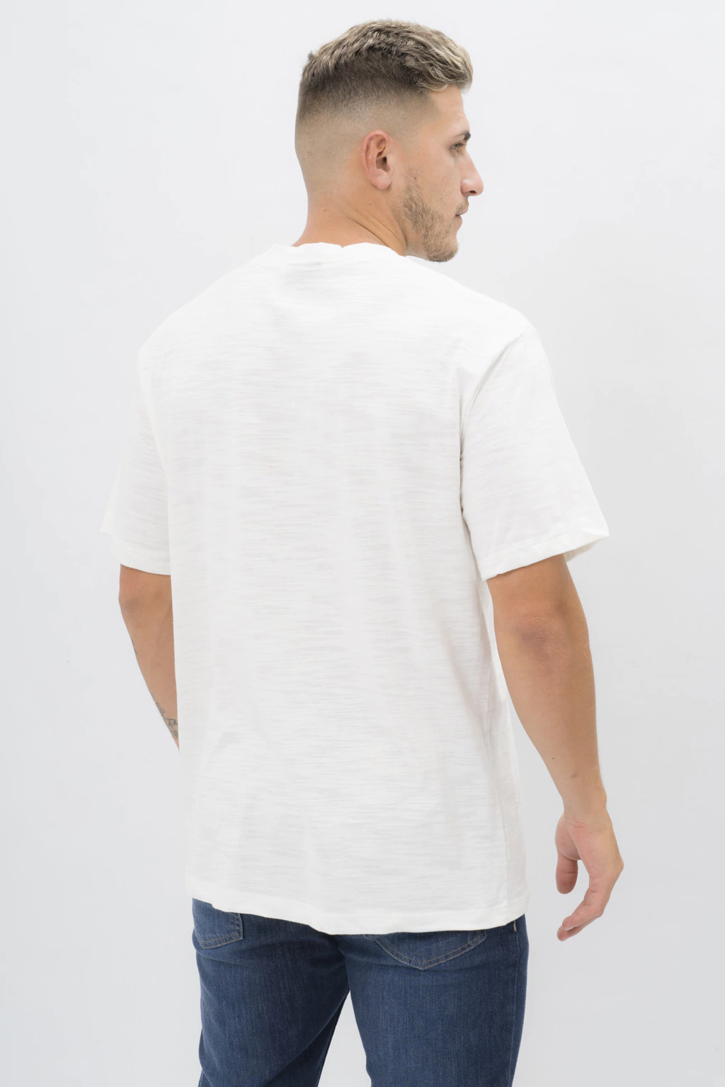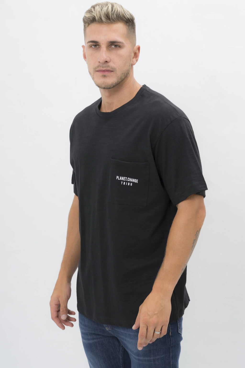 Esta remera de manga corta está confeccionada en Algodón Poliéster Flame, garantizando comodidad y estilo. Presenta un bolsillo recto al frente y un atractivo texto estampado. Su calce es Relax, ideal para un uso diario sin sacrificar el estilo.