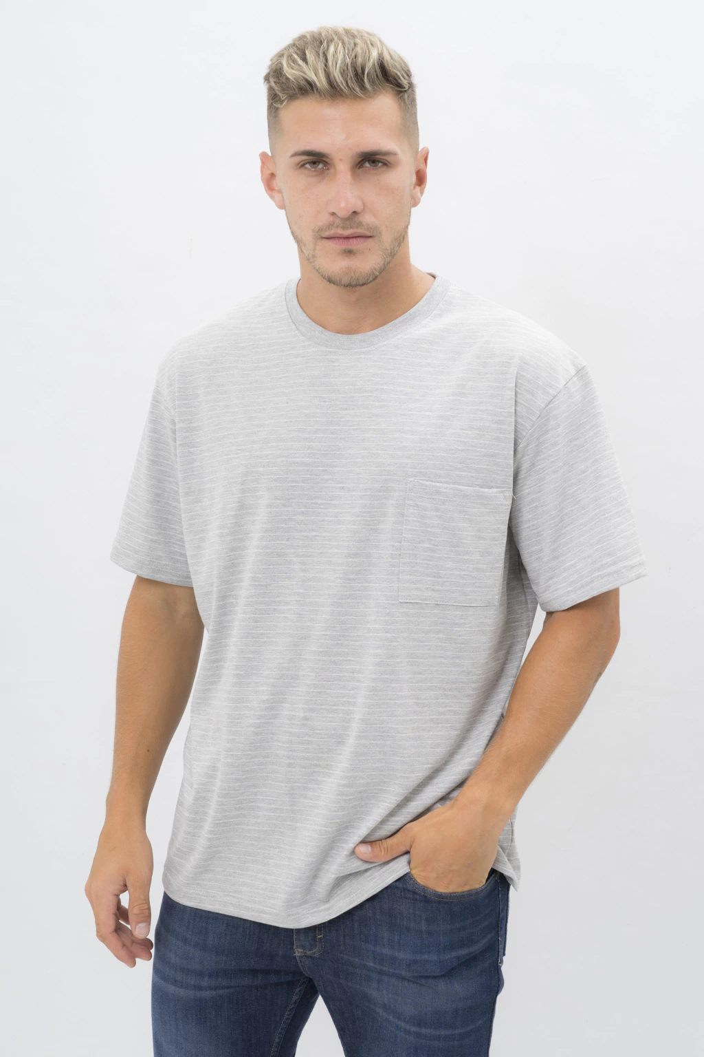La Remera Microrayas es una prenda de manga corta confeccionada en Algodón Jersey peinado, garantizando comodidad y frescura. Su diseño a micro rayas incorpora un práctico bolsillo recto al frente, ideal para un look relajado y moderno.