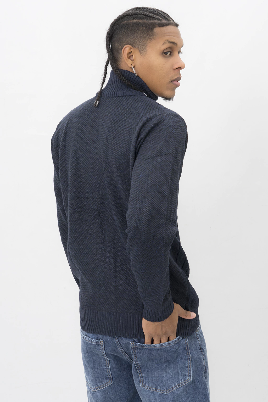 Este elegante sweater con cierre, confeccionado en un suave tejido trenzado y jaspeado, es ideal para los días frescos. Su diseño clásico combina confort y estilo, convirtiéndolo en una opción versátil para cualquier ocasión.
