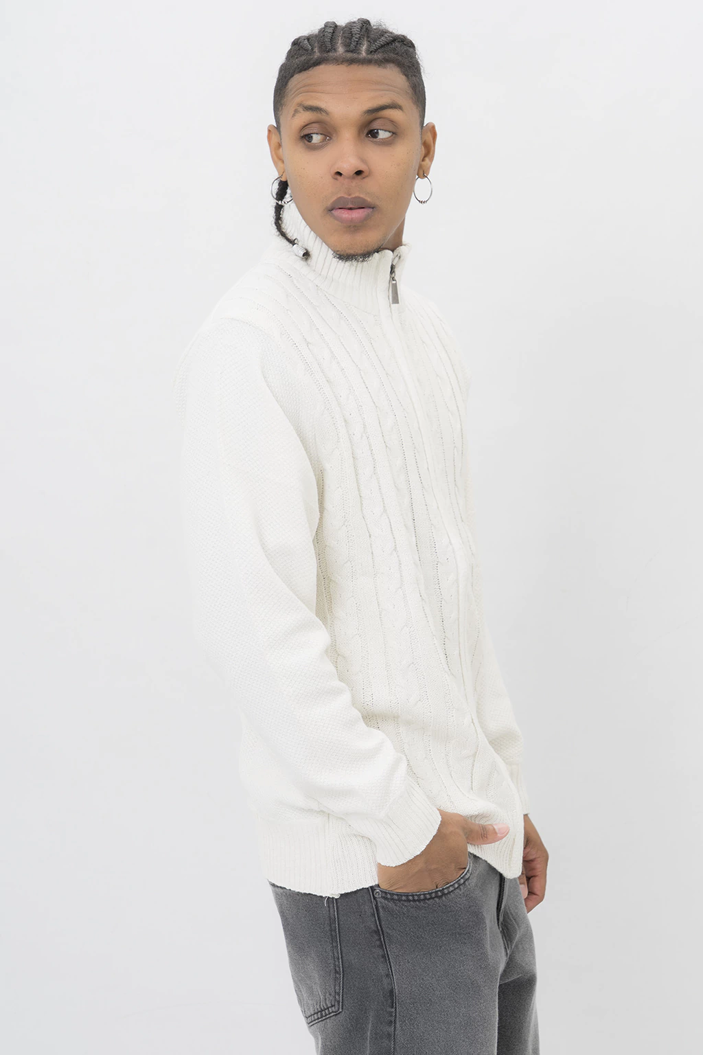 SWEATER CAMPERA DE PUNTO TRENZADO Y JASPEADO