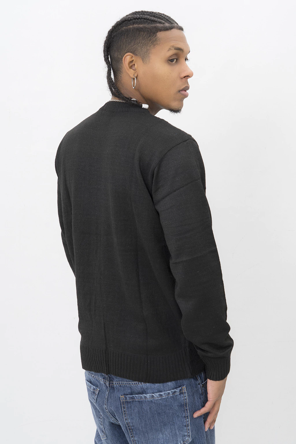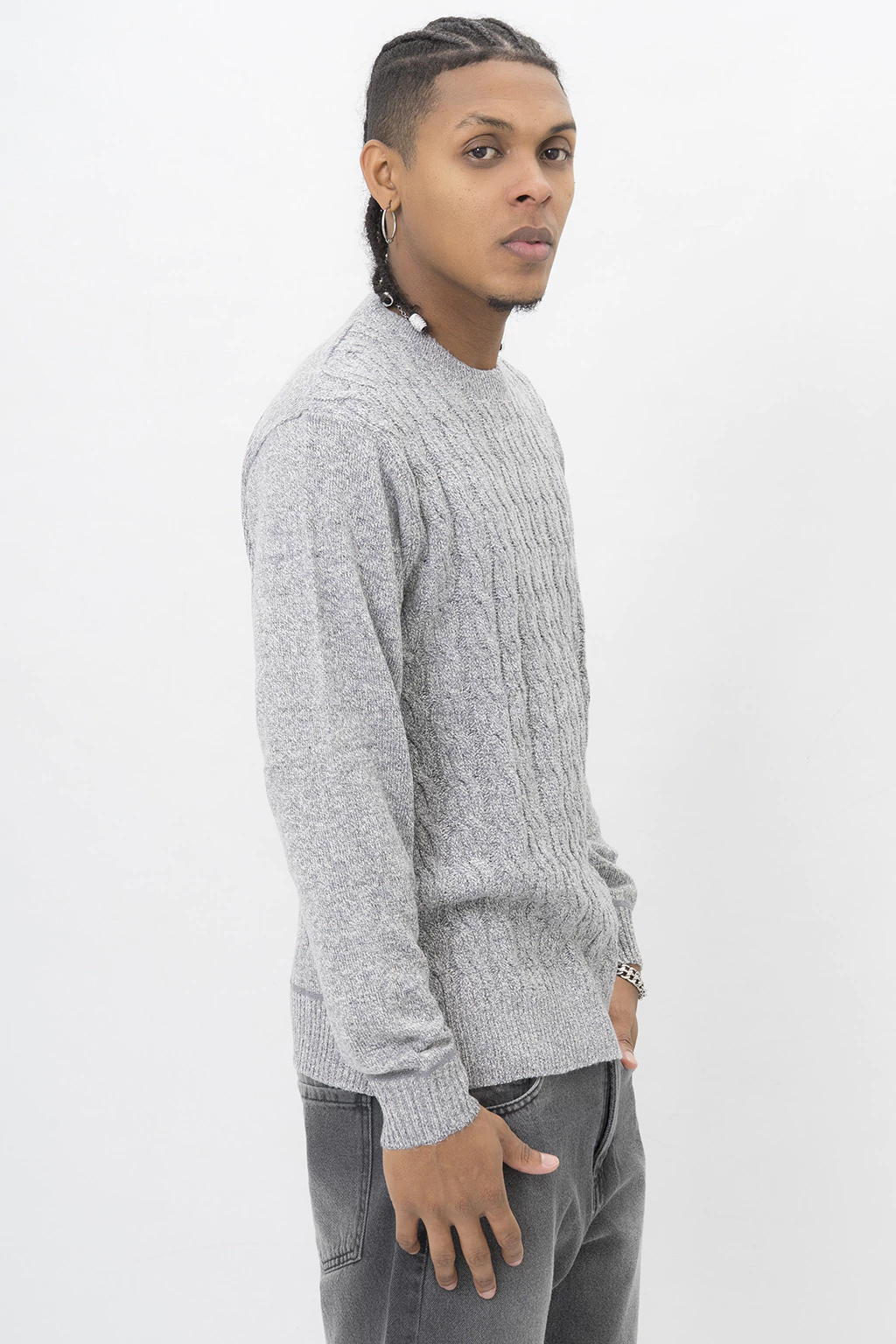 SWEATER ESCOTE REDONDO DE PUNTO TRENZADO Y JASPEADO